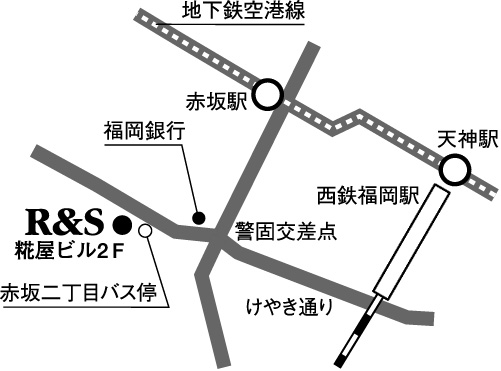 福岡市営地下鉄:空港線 赤坂駅下車 警固方面に向かい、警固四つ角からけやき通り西新方面へ徒歩15分
